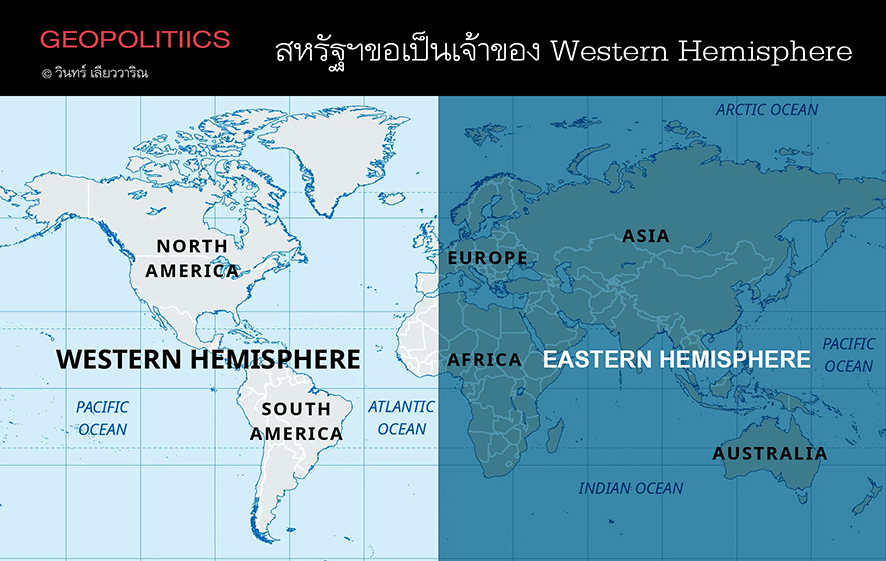 ท่านประธานาธิบดีทรัมป์และคณะพูดหลายครั้ง ตรงๆ ไม่อ้อมค้อมว่า "The Western Hemisphere เป็นของสหรัฐฯแต่เพียงผู้เดียว"