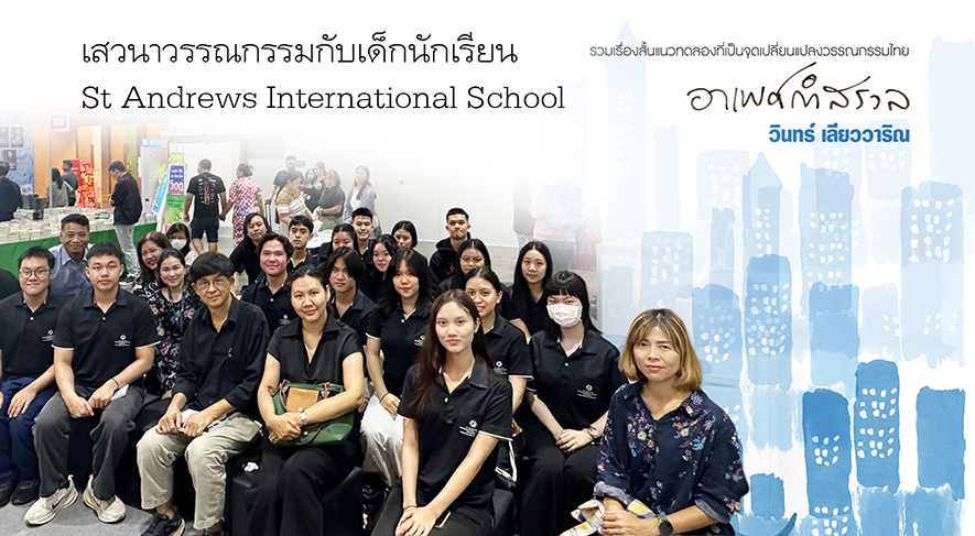 วันนี้มีกิจกรรมเสวนาวรรณกรรมที่งานหนังสือ เป็นกิจกรรมกับกลุ่มเด็กนักเรียนโรงเรียน St Andrews International School ที่เรียนวิชาวรรณกรรม และกำลังอ่าน อาเพศกำสรวล
