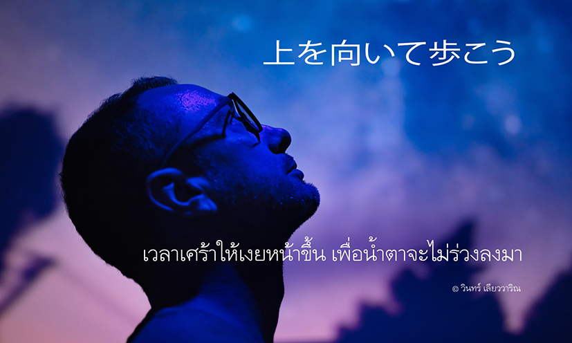 เวลาหดหู่เศร้าหมอง มีทุกข์ ให้เงยหน้าขึ้น อย่าก้มหน้า ก้มหน้าเห็นแต่ดินโคลน แต่เงยหน้าอาจเห็นฟ้า ตะวัน หรือดวงดาว