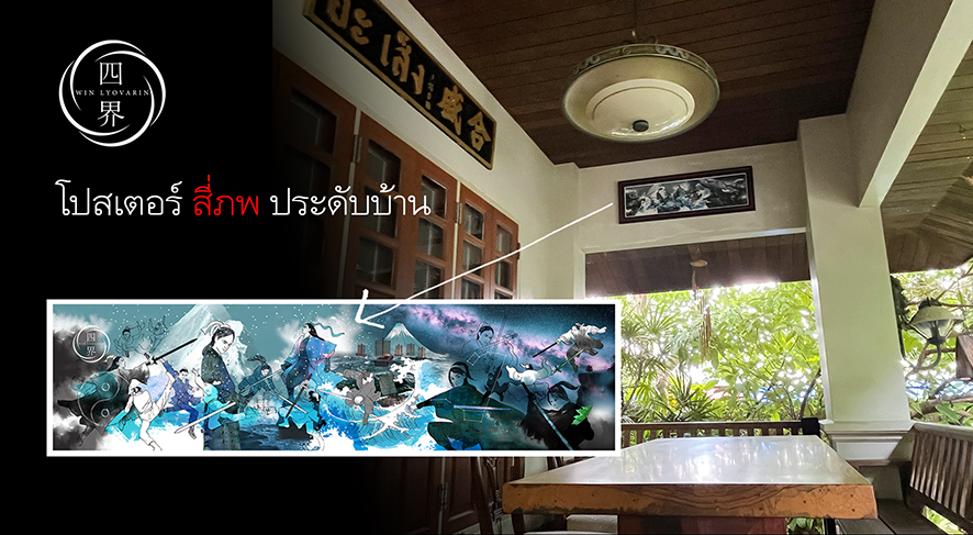 ผู้อ่านท่านหนึ่งส่งรูปบ้านของเขามาให้ดู ติดโปสเตอร์ สี่ภพ ความยาวเกือบเมตรบนผนัง