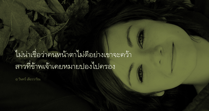 โลกมันกลมจริงๆ ข้าพเจ้านึกในใจ และไม่น่าเชื่อว่าคนหน้าตาไม่ดีอย่างไอ้หวัดจะคว้าสาวตากที่ข้าพเจ้าเคยหมายปองไปครอง